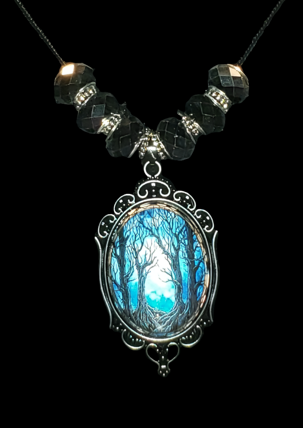 Blue Midnight in the Woods Amulet Necklace