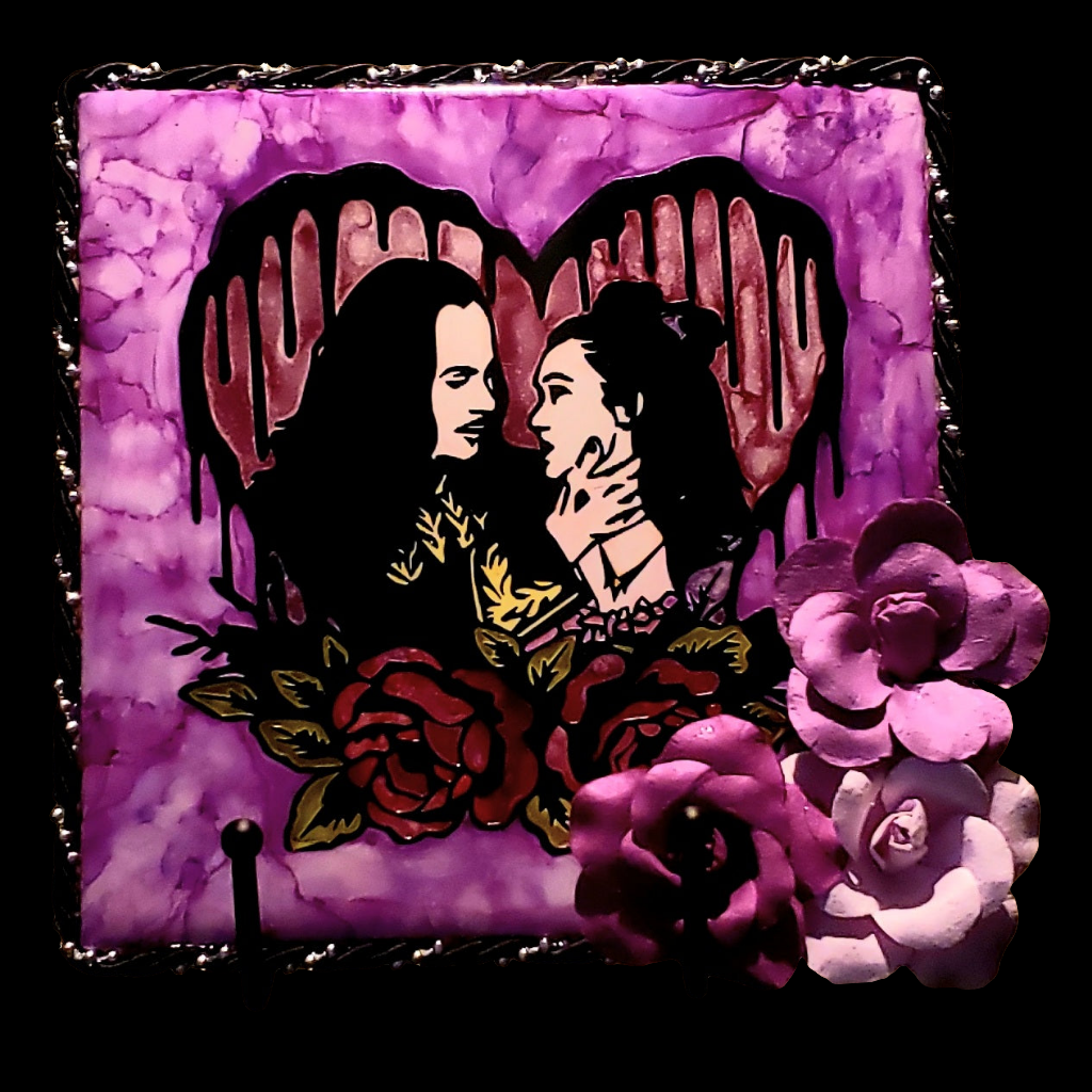6x6 painted ceramic tile. Alcohol inks and vinyl decals. Made to mount on the wall. Table stand included.