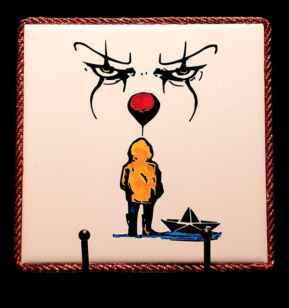 6x6 painted ceramic tile. Alcohol inks and vinyl decals. Made to mount on the wall. Table stand included.
