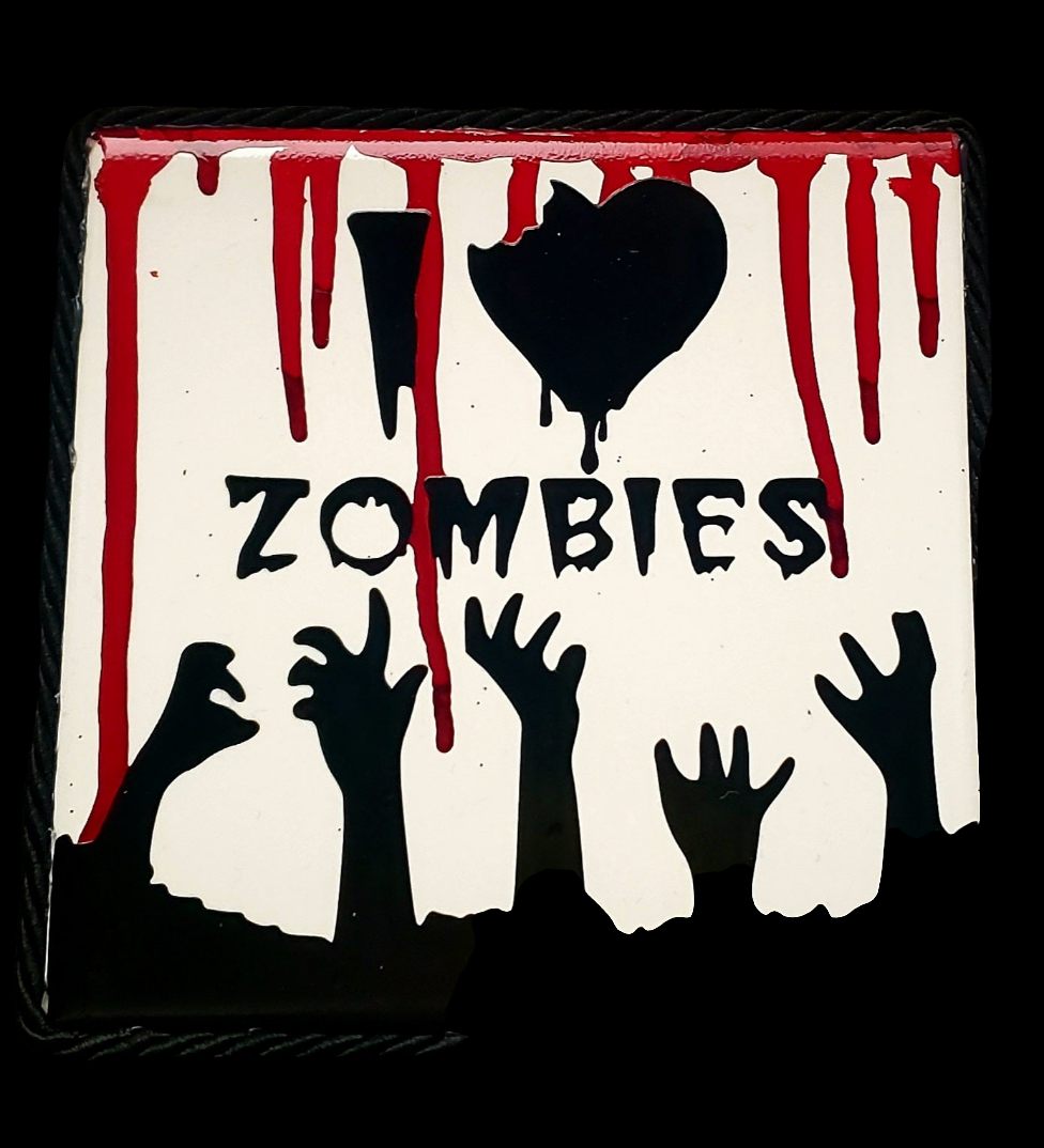 6x6 painted ceramic tile. Alcohol inks and vinyl decals. Made to mount on the wall. Table stand included.