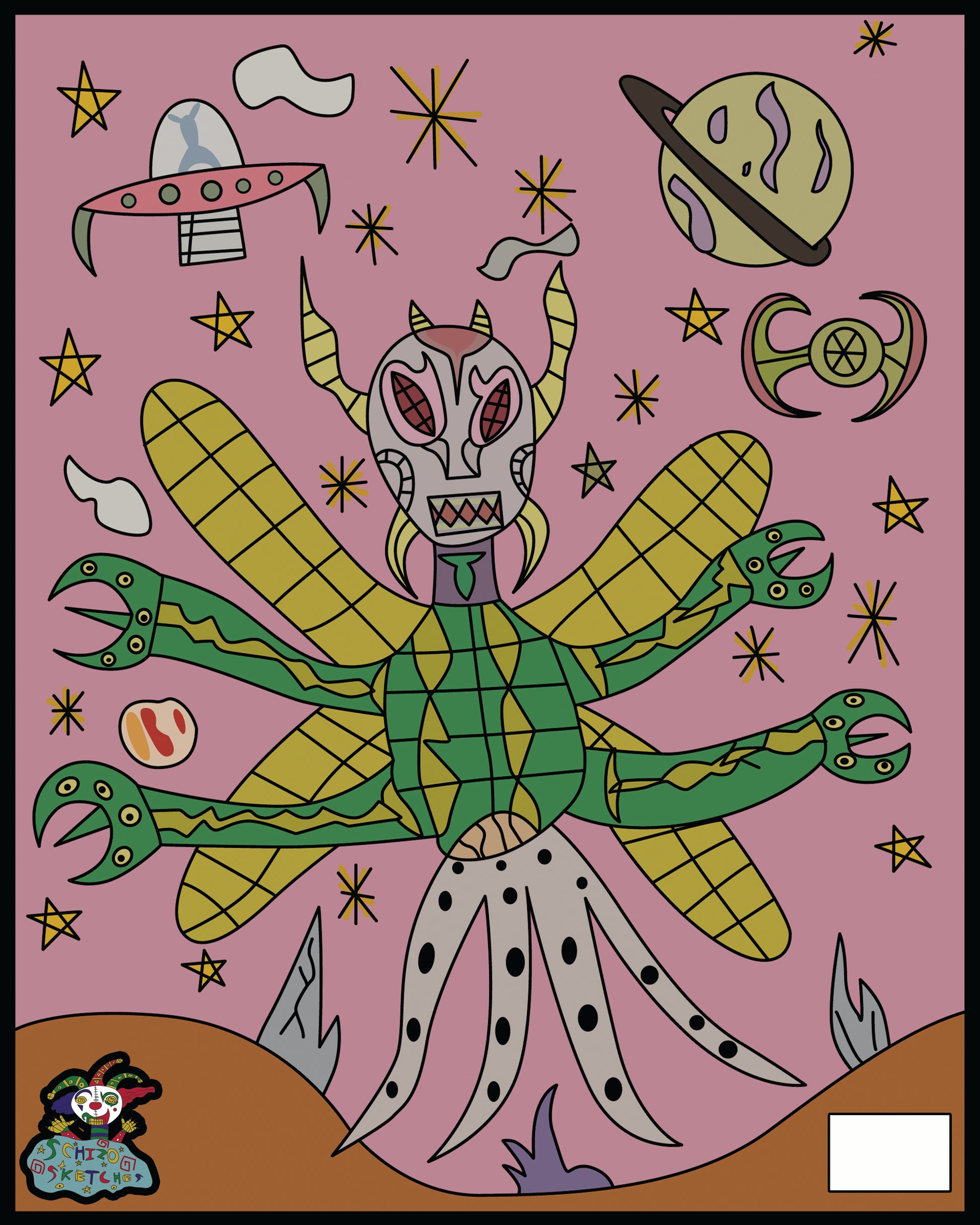 These sketches are from the mind of my schizophrenic son. Art is one of his favorite therapies and we've decided to open up and share to the world. All prints are original designs and numbered for limited series. All prints are 8x10. Thank you for your support!