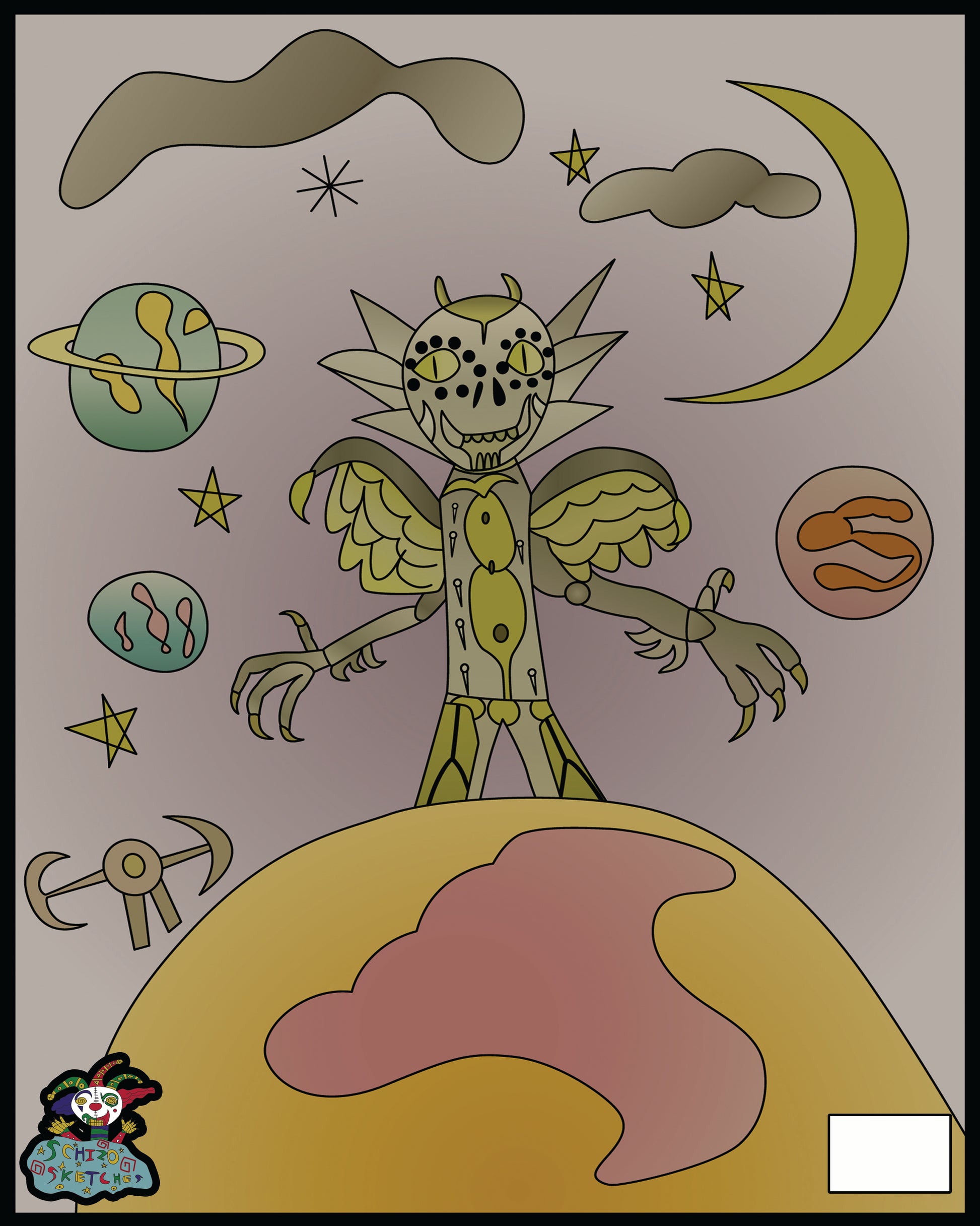 These sketches are from the mind of my schizophrenic son. Art is one of his favorite therapies and we've decided to open up and share to the world. All prints are original designs and numbered for limited series. All prints are 8x10. Thank you for your support!